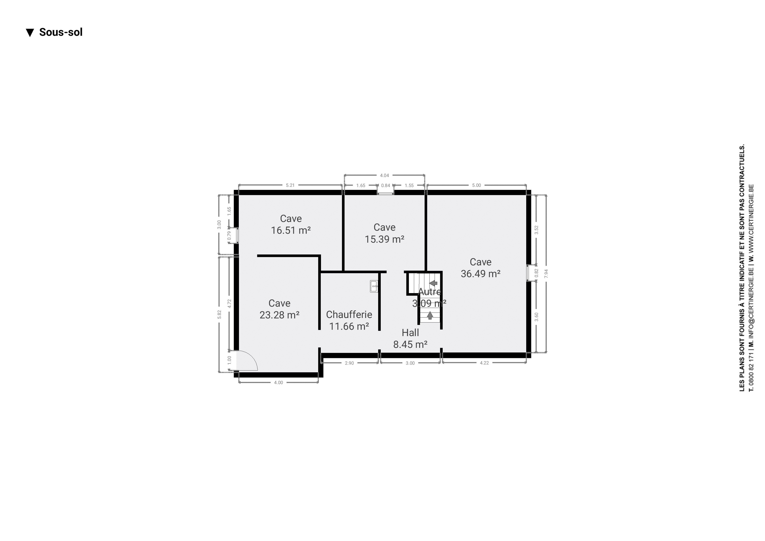 -1 : grandes caves de 110m² avec accès à l'extérieur.